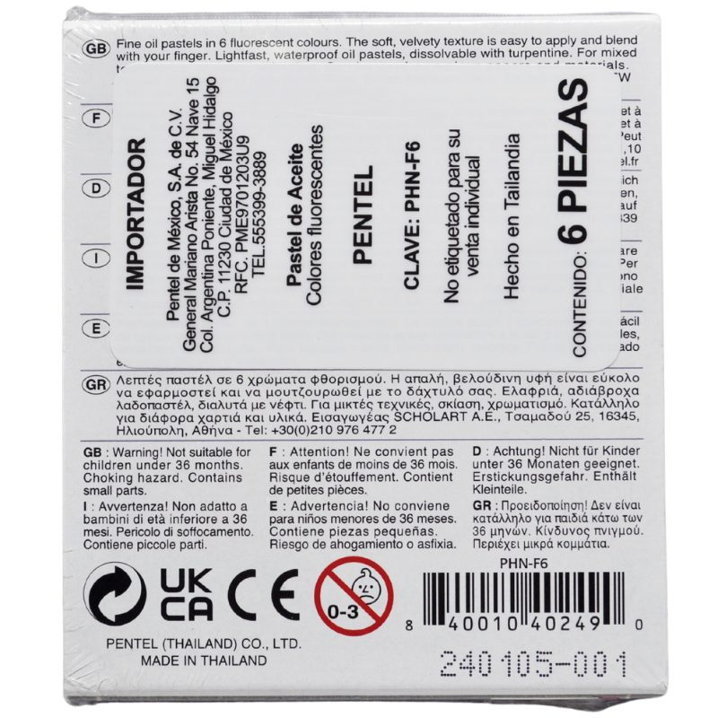 Paquete con 6 colores pastel fluorescente